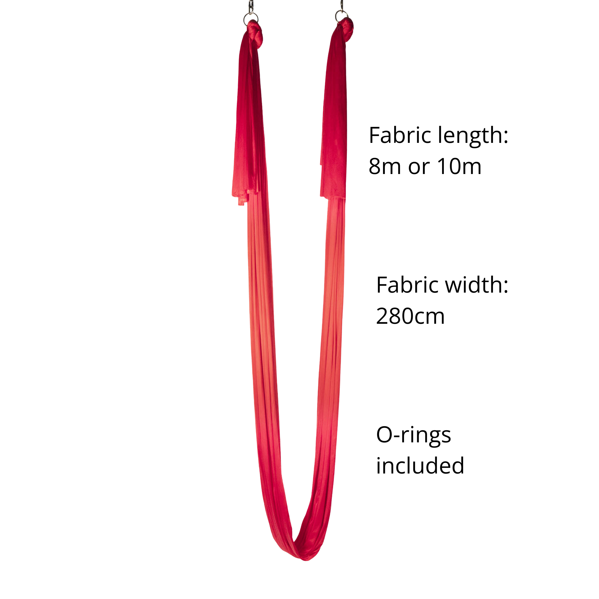 The fabric is the same low stretch, 2.8m (110") wide used for Prodigy Aerial Silk and Yoga Hammocks.