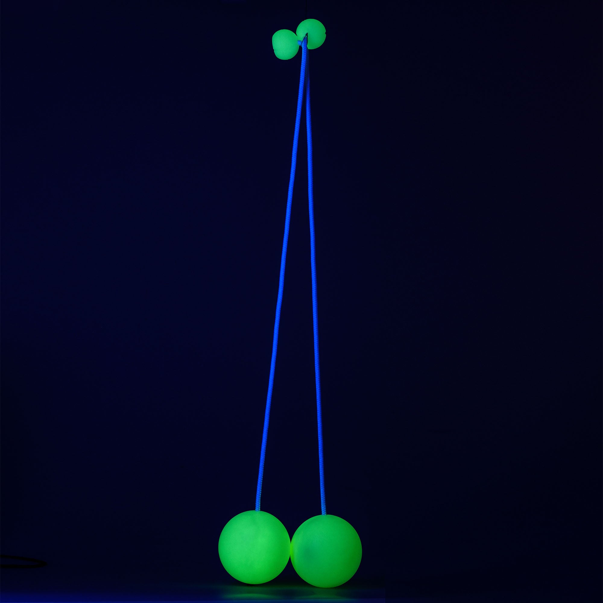 An eye-catching and professional pair of contact poi, with 90mm glow-in-the-dark balls, and glow-in-the-dark Pro Silicone Poi Handles!