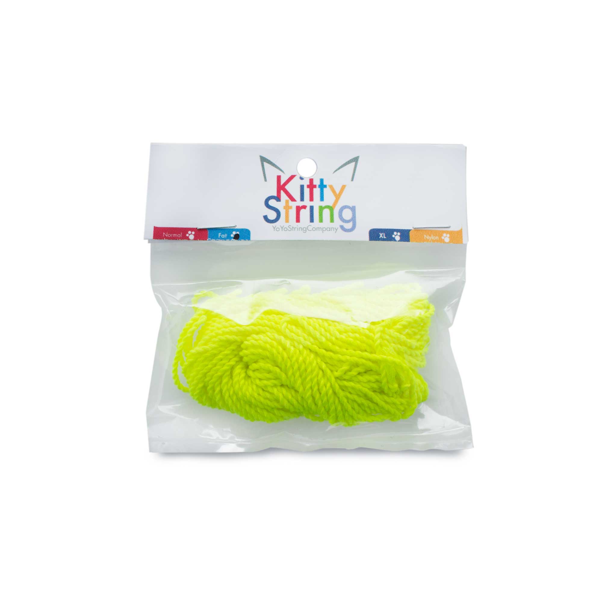 Kitty String is 100% polyester yoyo string. But this isn't just any old yoyo string, Kitty String is widely regarded as some of the best string out there. It's more durable, the sweet spot lasts longer and it resists tension better than almost any other yo yo string. While beginners may not feel the advantages of Kitty string, more advanced players definitely will. It's resistance to tension is great for slack and whip tricks as Kitty String has a greater tenancy to stay open longer for easier catches and whips