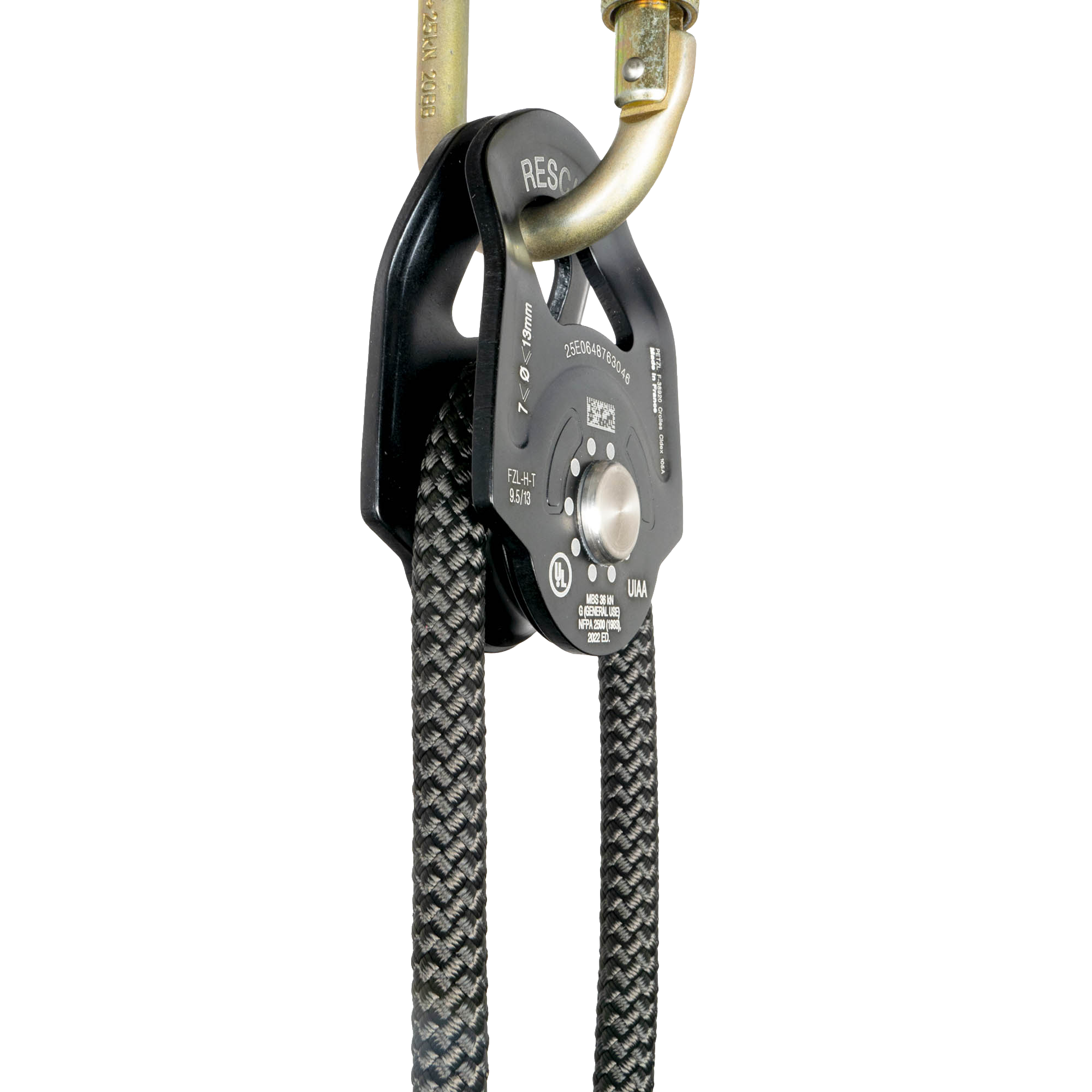 A durable and professional-grade pulley designed for ropes ranging from 7mm to 13mm.