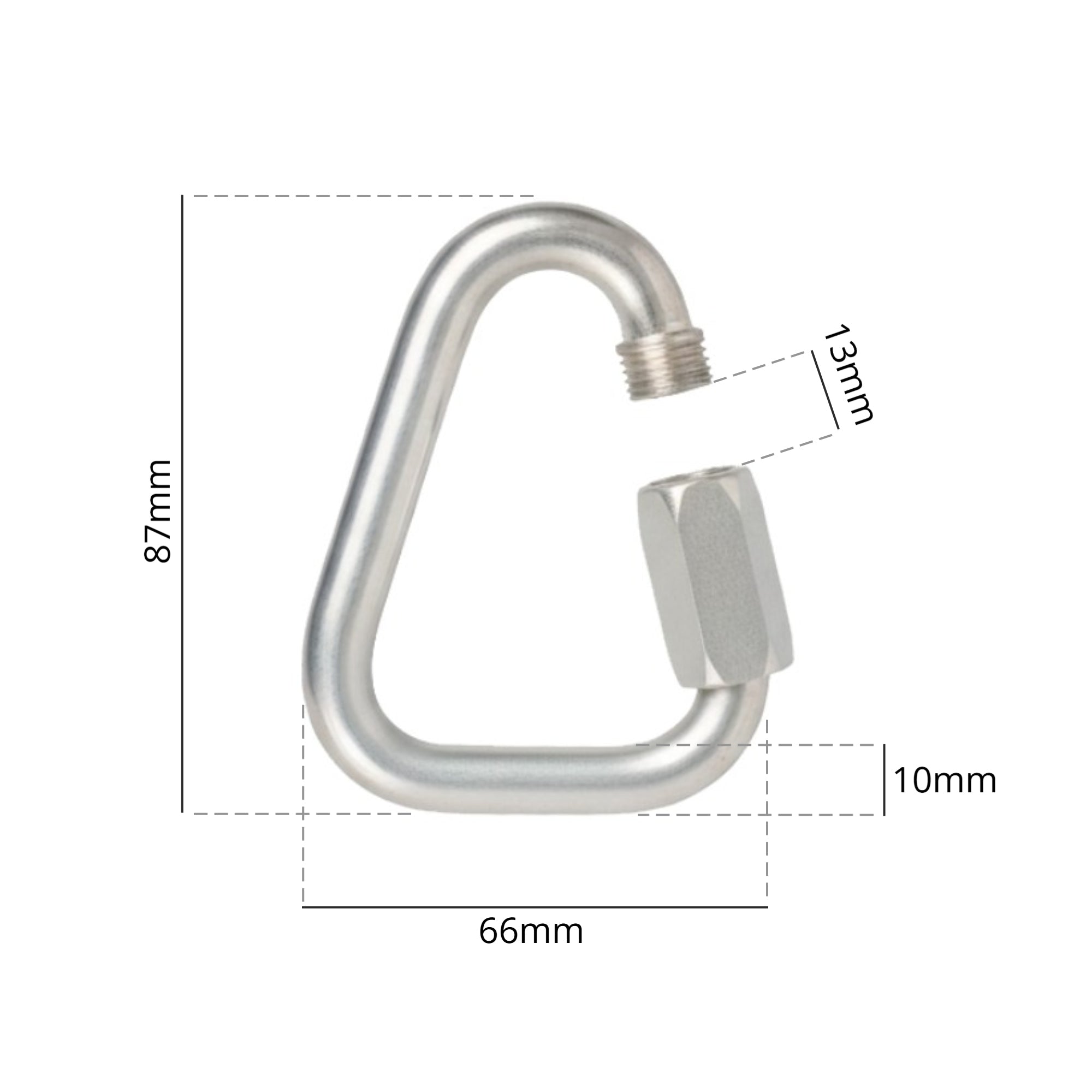 The 10mm delta is a medium sized quick link constructed from galvanised steel.